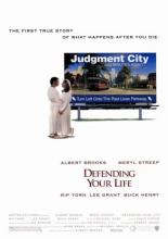 Нелепая автокатастрофа переносит героя в футуристический Город Суда — место, где белые халаты заменяют саваны, а вместо огненных котлов вас ждут шведские столы. Здесь нет ада или рая: лишь холодноватые судьи решат, достоин ли он перейти на следующий уровень существования или вернуться на Землю. Ключ ко всему — преодолённые страхи, а их у него немало. Но всё усложняет встреча с блистательной женщиной, чья жизнь выглядит идеальной на экранах суда. Смогут ли они остаться вместе, когда её путь кажется прямым, а его — лабиринтом сомнений? Альберт Брукс и Мэрил Стрип создают трогательный дуэт в этом остроумном фэнтези, где бюрократия загробного мира лишь подчёркивает вечные вопросы: что значило быть человеком и хватило ли нам смелости? .